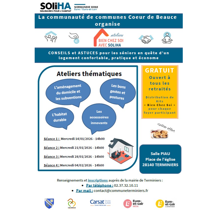 4 séances : 14/01, 22/01, 28/01 et 04/02/2026 à 14h00 - Salle place de l'église